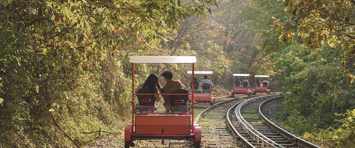 출발만 가볍게 저어주면 부드럽게 나아가는 반자동 레일바이크!