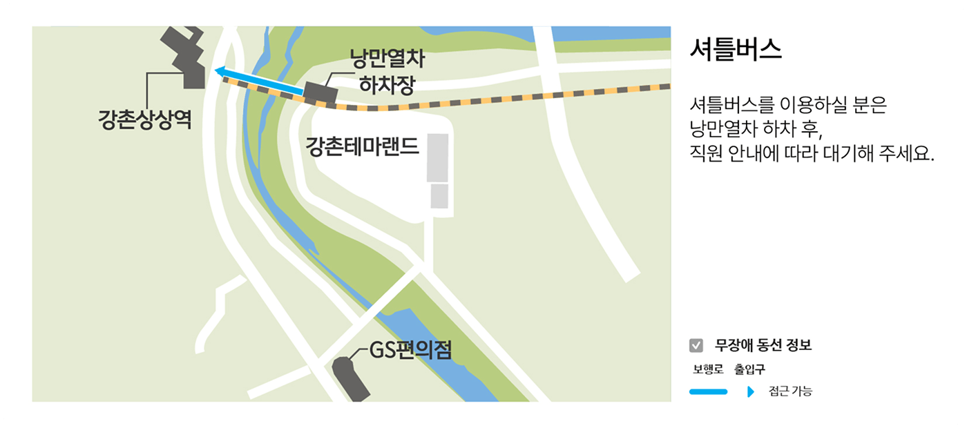 셔틀버스를 이용하실 분은 낭만열차 하차 후, 직원 안내에 따라 대기해 주세요.